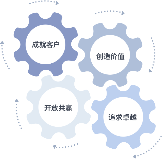 成就客户是一切决策的出发点,创造价值是衡量所有工作的标准,追求卓越是CA88做事做人的态度,开放共赢是CA88的格局也是最终的结果。价值观的齿轮环环相扣,推动着组织里的每个人不断向前。